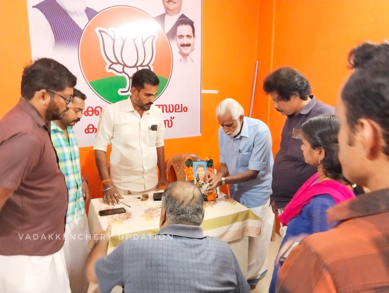 വടക്കഞ്ചേരി മണ്ഡലത്തിലെ ധീര ബലിദാനി സ്വർഗ്ഗീയ അരുൺ കുമാറിന്റെയും മറ്റു പാർട്ടി നേതാക്കളുടെയും ഛായാചിത്രം BJP വടക്കഞ്ചേരി മണ്ഡലം കമ്മിറ്റി ഓഫീസിൽ അനാച്ഛാദനം ചെയ്തു. സംസ്ഥാന സമിതി അംഗം സി.എസ് ദാസ് ഉദ്ഘാടനം ചെയ്തു. മണ്ഡലം പ്രസിഡന്റ് വി. ഭവദാസ് അദ്ധ്യക്ഷനായി , മണ്ഡലം ജനറൽ സെക്രട്ടറി അഡ്വ. ശ്രീരാജ് വള്ളിയോട് , ശിവനാരായണൻ തുടങ്ങിയവർ സംസാരിച്ചു.
