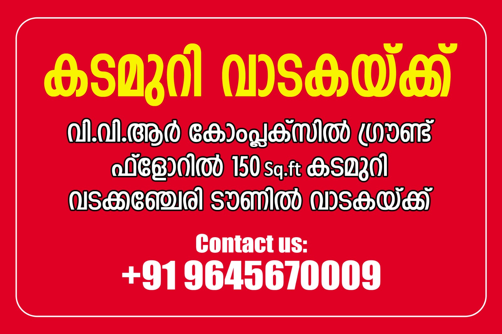 വടക്കഞ്ചേരിയിൽ വി.വി.ആർ കോംപ്ലക്സിൽ ഗ്രൗണ്ട് ഫ്ളോറിർ 150 Sqft കടമുറി വടക്കഞ്ചേരി ടൗണിൽ വാടകയ്ക്ക്
