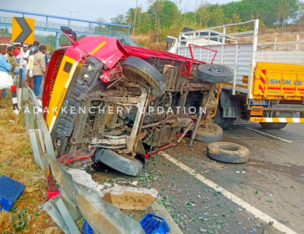 ദേശീയപാത NH 544 നീലിപ്പാറയിൽ സോഡാ കയറ്റി കൊണ്ടുപോകുന്ന ടെമ്പോ യിൽ പുറകിൽ വന്ന ടെംബോ ഇടിച്ച് സോഡാ വണ്ടി മറിഞ്ഞു. മറിഞ്ഞ വണ്ടിയിലുള്ളവർക്ക് ഗുരുതര പരിക്ക്. ഉടൻ തന്നെ ആശുപത്രിയിലേക്ക് 108, ഹൈവേ യുടെ ആംബുലൻസുകളിലായി കൊണ്ടുപോയി.നീലിപ്പാറ ടോൾ പമ്പിന്റെ അടുത്തുള്ള വാഹനം തിരിയുന്ന ഭാഗത്താണ് അപകടം നടന്നത്. അപകടത്തെ തുടർന്ന് ദേശീയപാതയിൽ ഗതാഗതക്കുരുക്ക് ഉണ്ടായിരുന്നു. ഒരു വാഹനത്തിൽ നിന്നും വളരെ ബുദ്ധിമുട്ടിയാണ് ഒരാളെ എടുത്തത് .കോയമ്പത്തൂർ ഉക്കടം സ്വദേശി കാസിം (38), കോയമ്പത്തൂർ സുണ്ണാമ്പ് കളൈവെ കൈതമില്ലത്ത് സ്ട്രീറ്റിൽ അലാവുദ്ദീൻ (34) മലമ്പുഴ ചേറാട് ലക്ഷം വീട് കോളനി മണികണ്ടൻ (48) എന്നിവർക്കാണ് പരിക്കേറ്റത്. ശനിയാഴ്ച ഉച്ചയ്ക്ക് 3.30 നാണ് സംഭവം നടന്നത്
