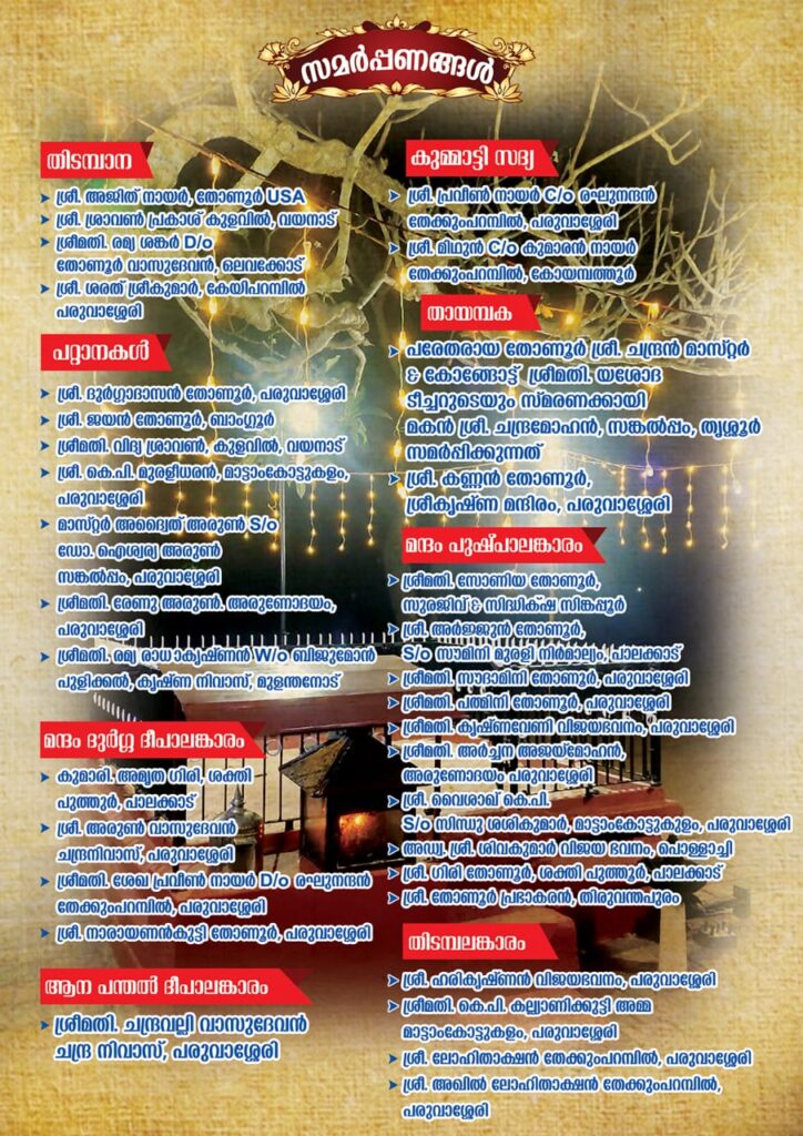 ശ്രീ പള്ളിയറ ഭഗവതി സഹായം പരുവാശ്ശേരി കുമ്മാട്ടി മഹോത്സവം ഇന്ന്