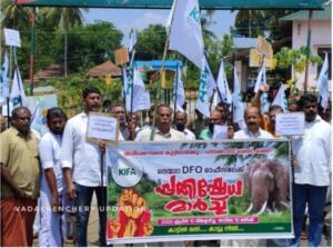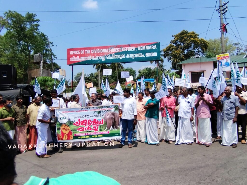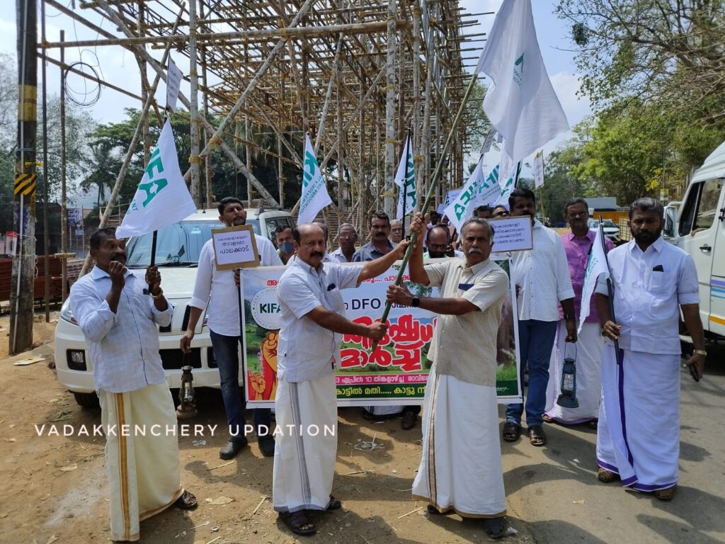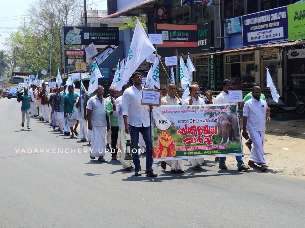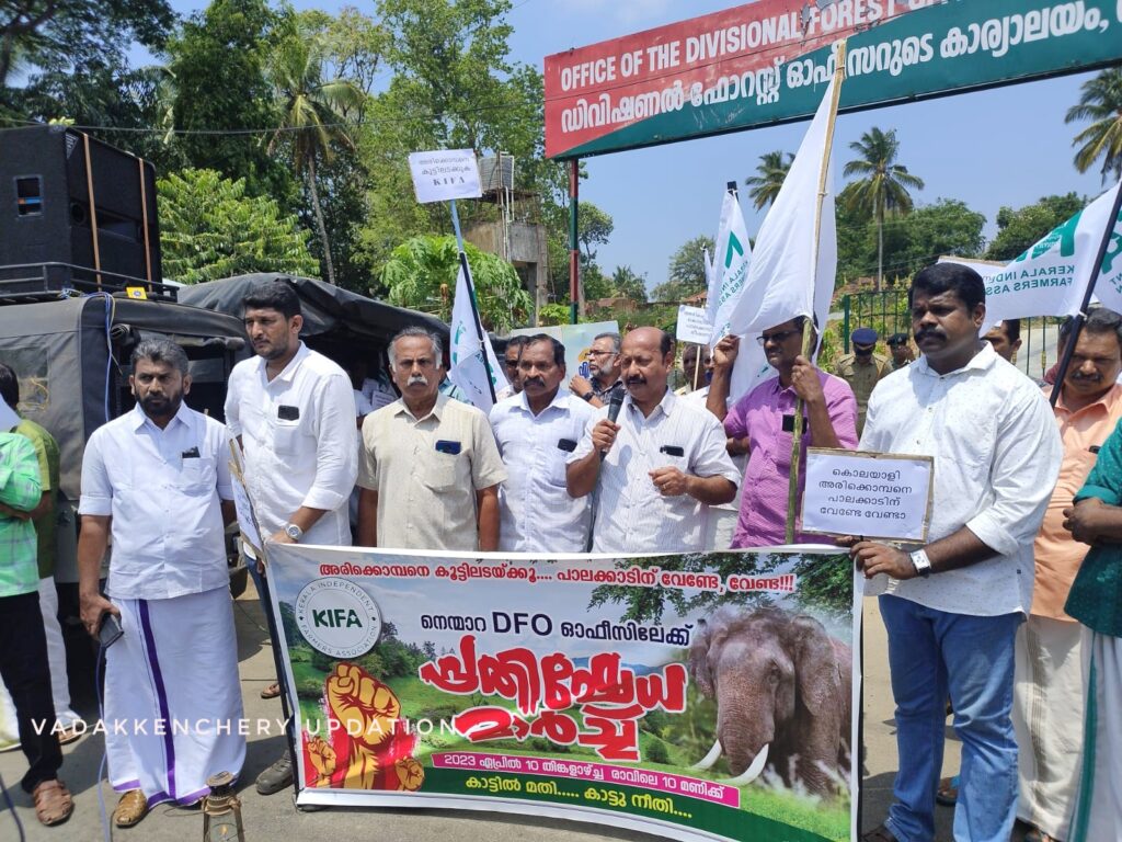 വനം വകുപ്പിന്റെ തലതിരിഞ്ഞ തീരുമാനം വിദഗ്ധ സമിതിയുടെ മറവിൽ കോടതി ഉത്തരവായി എത്തിയതാണെന്നും. അരിക്കൊമ്പനെ വനം വകുപ്പ് ജൈവായുധമായി മലയോരമേഖലയിലുള്ള ജനവാസ മേഖലയ്ക്ക് നേരെ പ്രയോഗിക്കുകയാണെ ന്നും വനം വകുപ്പിന്റെ ബിനാമി ടീമായി പരിസ്ഥിതി സംഘടനകൾ മാറിയതിന്റെ തെളിവാണ് അരിക്കൊമ്പനെ പറമ്പിക്കുളത്തേക്ക് മാറ്റാൻ കോടതി ഉത്തരവ് ഉണ്ടാക്കാൻ പ്രേരിപ്പിച്ചതെന്നും അരിക്കൊമ്പനെ പറമ്പിക്കുളത്ത് വിടാൻ അനുവദിക്കില്ലെന്നും ആക്രമണകാരിയായ അരികൊമ്പനെ കൂട്ടിലടക്കണമെന്നും കേരള ഇൻഡിപെൻഡന്റ് ഫാർമേഴ്സ് അസോസിയേഷൻ (കിഫ ) ഭാരവാഹികൾ പറഞ്ഞു. ചിന്നക്കനാലിൽ നിന്ന് അരിക്കൊമ്പനെ പറമ്പിക്കുളത്ത് വിടുന്നതിനെതിരെ കിഫ. നെന്മാറയിൽ നിന്നും ഡി. എഫ്. ഒ. ഓഫീസിലേക്ക് നടത്തിയ പ്രതിഷേധ മാർച്ച് സണ്ണി കിഴക്കേക്കര എം അബ്ബാസിന് പതാക കൈമാറി ഉദ്ഘാടനം ചെയ്തു. അധികാരികളുടെ മനസ്സിൽ വെളിച്ചം എത്തിക്കാൻ എന്ന ഉദ്ദേശത്തോടെ പകൽ വെളിച്ചത്തിലും കത്തിച്ചുവച്ച റാന്തലുകളും പ്ലക്കാർഡുകളും പിടിച്ച് നൂറുകണക്കിന് മലയോരവാസികൾ പ്രതിഷേധ മാർച്ച് നടത്തി. മാർച്ച് അയിനം പാടത്തുള്ള ഡി. എഫ്. ഒ. ഓഫീസിനു മുന്നിൽ പോലീസ് തടഞ്ഞു. തുടർന്ന് നടന്ന പൊതുയോഗത്തിൽ ഡോ. സിബി സക്കറിയ അധ്യക്ഷനായി. കിഫ ജില്ലാ പ്രസിഡണ്ട് സണ്ണി കിഴക്കേക്കര പൊതുയോഗം ഉദ്ഘാടനം ചെയ്തു. ഫാദർ സജി വട്ടംകുളം മുഖ്യപ്രഭാഷണം നടത്തി. രാമദാസ് ഇളനാട്, ജോമി മാളിയേക്കൽ, ബിനു പൈതല, എസ് എം ഷാജഹാൻ എന്നിവർ സംസാരിച്ചു അബ്ബാസ് ഒറവൻചിറ നന്ദി പറഞ്ഞു.