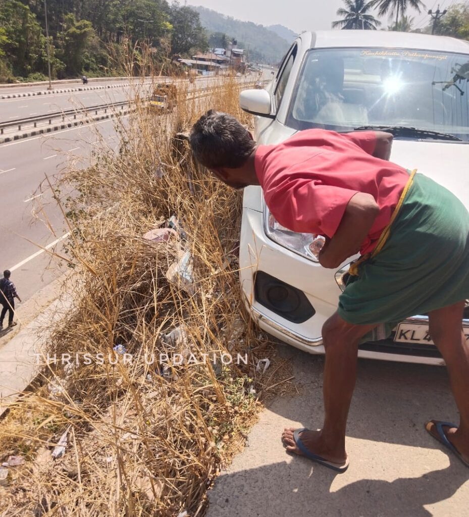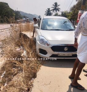 പട്ടിക്കാട് നിന്നും എളനാട് ഭാഗത്തേക്ക് പോകുന്ന കാറാണ് വാണിയംപാറ മേലേ ചുങ്കത്ത് 30 അടിയിൽ കൂടുതൽ ഉയരത്തിൽ സ്ഥിതി ചെയ്യുന്ന റോഡിൽ നിന്നും താഴെയ്ക്ക് വീഴാതെ കുടുങ്ങി നിന്നത്
