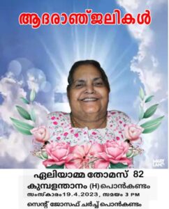 പൊൻകണ്ടം കുമ്പളന്താനം വീട്ടിൽ ഏലിയാമ്മ തോമസ് (82) അന്തരിച്ചു സംസ്കാരം ഇന്ന് ബുധനാഴ്ച (19.04.2023) വൈകീട്ട് 3 മണിക്ക് പൊൻകണ്ടം സെന്റ് ജോസഫ് ചർച്ചിൽ