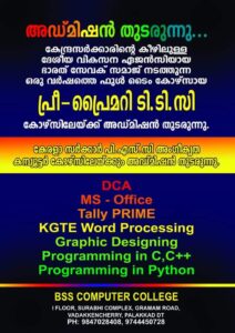 ഭാരത് സേവക് സമാജ് (ബി.എസ്.എസ്) ൻ്റെ കീഴിൽ നടത്തുന്ന കേന്ദ്ര / കേരള സർക്കാർ അംഗീകൃത തൊഴിലധിഷ്ഠിത കോഴ്സുകൾക്ക് രജിസ്ട്രേഷൻ ആരംഭിച്ചു.