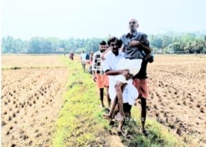 രോഗിയെ ചുമലിലേറ്റി ആംബുലൻസിലെത്തിച്ചു.