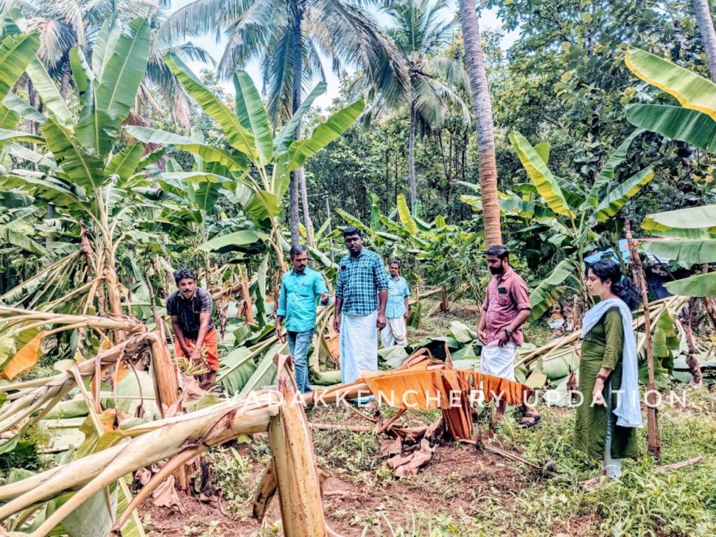 കാറ്റിലും മഴയിലും വാഴത്തോട്ടം നശിച്ചു