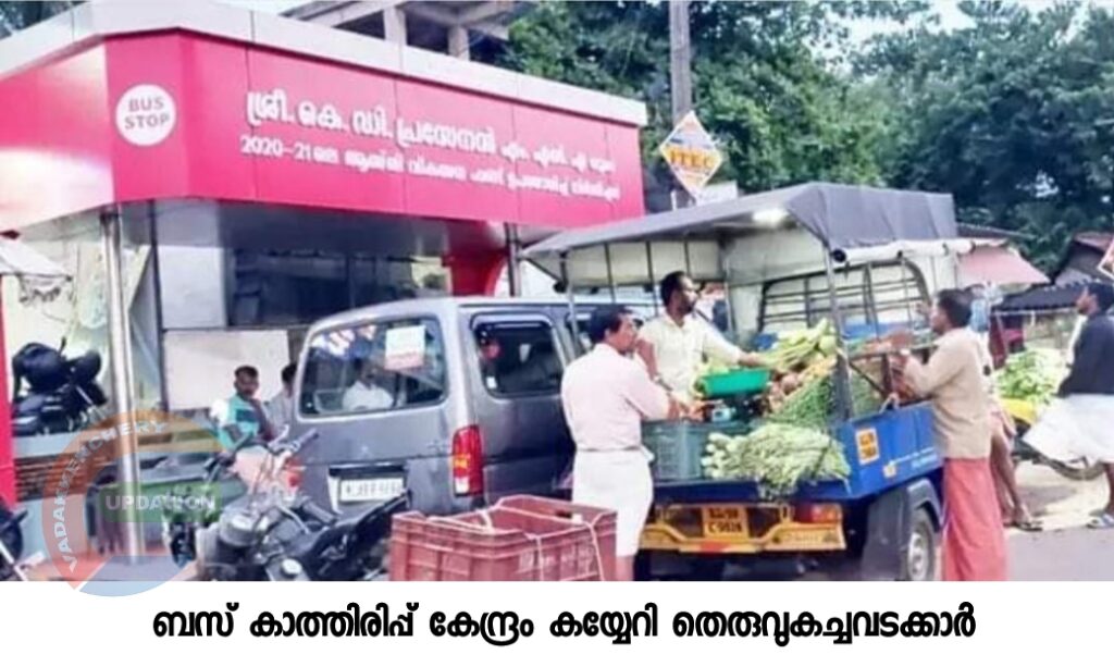 ബസ് കാത്തിരിപ്പ് കേന്ദ്രം കയ്യേറി തെരുവുകച്ചവടക്കാർ