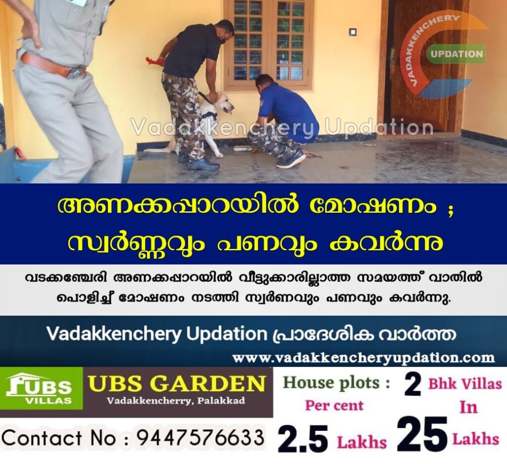 വടക്കഞ്ചേരി അണക്കപ്പാറയിൽ വീട്ടുക്കാരില്ലാത്ത സമയത്ത് മോഷണം; സ്വർണ്ണവും പണവും കവർന്നു