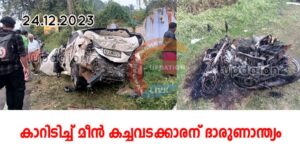 ചിറ്റൂർ : കാർ മീൻ കച്ചവടക്കാന്റെ സ്കൂട്ടറിൽ ഇടിച്ച് വൻ അപകടം അപകടത്തിൽ സ്കൂട്ടർ പൂർണ്ണമായും കത്തി നശിച്ചു. ഇരുചക്ര വാഹനത്തില് സഞ്ചരിച്ചിരുന്ന നല്ലേപ്പിള്ളി പാറക്കല് സ്വദേശി മണികണ്ഠന് (43) ആണ് മരിച്ചത്. തല ഏറെ നേരത്തെ തെരച്ചിലിന് ഒടുവില് കണ്ടെത്തിത് എന്നാണ് നാട്ടുകാർ പറയുന്നത്. ചിറ്റൂർ അമ്പാട്ട് വളയം ബോയ്സ് സ്കൂളിന്റെയും ഇടയിലാണ് അപകടം സംഭവിച്ചത് . പുലർച്ചെയാണ് അപകടം സംഭവിച്ചത്. ചിറ്റൂർ കരുണ മെഡിക്കൽ കോളേജിലെ വിദ്യാർത്ഥികളെ ബാംഗ്ലൂരിൽ നിന്നും തിരിച്ച് കണ്ട് മടക്കുന്ന കൊല്ലം സ്വദേശികളാണ് കാറിൽ ഉണ്ടായിരുന്നതെന്ന് നാട്ടുകാർ പറഞ്ഞു.
