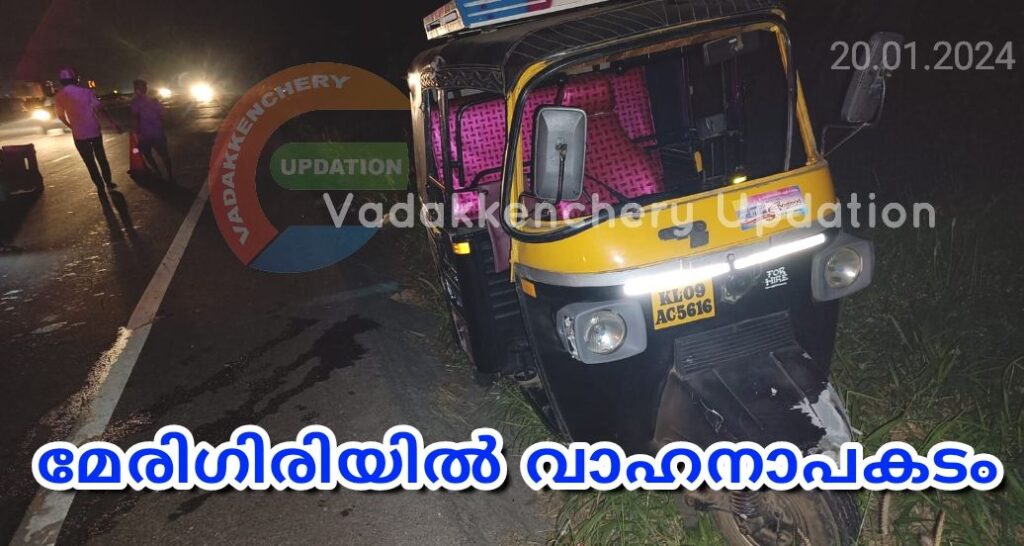 ദേശീയപാത 544 ചെമ്മണ്ണംകുന്ന് കയറ്റത്തിൽ ഓട്ടോറിക്ഷ നിയന്ത്രണം വിട്ട് മറിഞ്ഞു..അപകടം സംഭവിച്ച ഉടൻ തന്നെ വടക്കഞ്ചേരിയിൽ നിന്നും 108 ആംബുലൻസും ഹൈവേ എമർജൻസി ടീമും എത്തി ഒട്ടോറിക്ഷ ഡ്രൈവറെ ആശുപത്രിയിലേക്ക് കൊണ്ടുപോയി. അപകട കാരണം . അപകടത്തിൽ ഓട്ടോറിക്ഷയ്ക്ക് കേടുപാടുകൾ സംഭവിച്ചിട്ടുണ്ട്. കല്ലിങ്കൽപ്പാടം സ്വദേശി ബാബുവിനാണ് പരിക്ക് പറ്റിയത്. തലയ്ക്കും പരിക്ക് പറ്റിയിട്ടുണ്ട്.