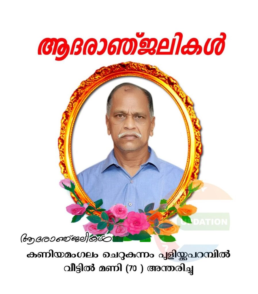 കണിയമംഗലം ചെറുകുന്നം പുളിയ്ക്കപറമ്പിൽ വീട്ടിൽ മണി (70 ) അന്തരിച്ചു