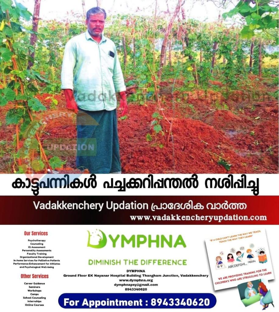 കാട്ടുപന്നിക്കൂട്ടം പാവല്, പയർ കൃഷി ചെയ്തിരുന്ന തടങ്ങളും പന്തലുകളും നശിപ്പിച്ചു. സമീപത്തുള്ള നെല്പ്പാടങ്ങളുടെ വരമ്പുകളും കുത്തിമറിച്ചതോടെ കെട്ടി നിർത്തിയിരുന്ന പാടങ്ങളിലെ വെള്ളം ഒഴുകിപ്പോയി.അയിലൂർ തിരുവഴിയാട് പുത്തൻ തറയില് ഉദുമാന്റെ വിളവെടുപ്പ് തുടങ്ങിയ പച്ചക്കറി പന്തലുകളാണ് പന്നിക്കൂട്ടം നശിപ്പിച്ചത്. ചെടികള് നില്ക്കുന്ന തടങ്ങളും പന്തലുകള് താങ്ങി നിർത്തിയ കാലുകളും കുത്തിമറിച്ചതോടെ പച്ചക്കറി പന്തല് പൂർണ്ണമായും നിലം പതിച്ച് വിളവ് ഉള്പ്പെടെ നശിച്ചു. 50000 രൂപയോളം നഷ്ടം കണക്കാക്കുന്നതായി ഉദുമാൻ പറഞ്ഞു.