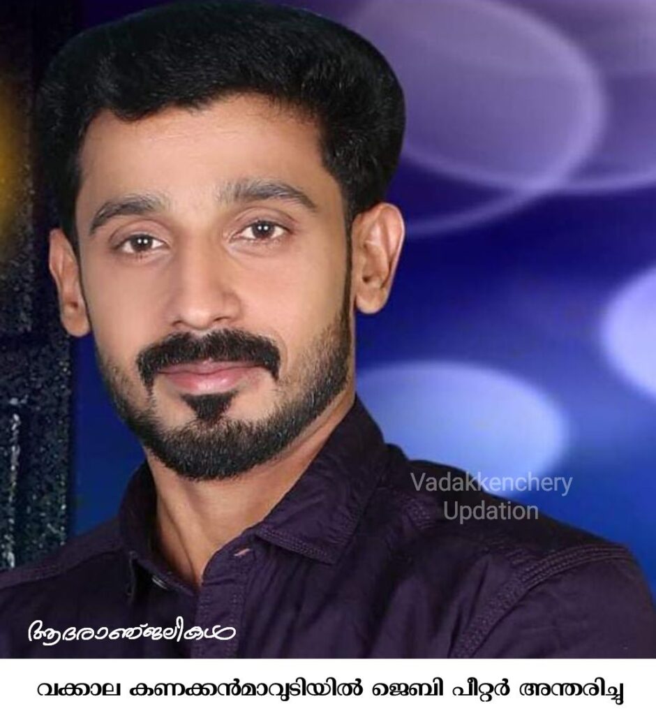 മംഗലംഡാം വക്കാല കണക്കൻമാവുടിയിൽ ജെബി പീറ്റർ (36) അന്തരിച്ചു. അച്ഛൻ : പരേതനായ പീറ്റർ, അമ്മ : ജെറി, ഭാര്യ : സ്നേഹ. മക്കൾ : ഇവാന , എൽന . സംസ്ക്കാരം ചെറുകുന്നം സെന്റ് തോമസ് ഓർത്തഡോക്സ് പള്ളിയിൽ.