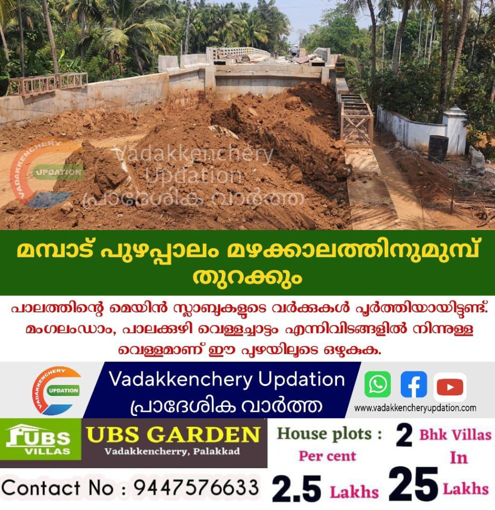 പാലത്തിന്റെ മെയിൻ സ്ലാബുകളുടെ വർക്കുകള് പൂർത്തിയായിട്ടുണ്ട്. മംഗലംഡാം, പാലക്കുഴി വെള്ളച്ചാട്ടം എന്നിവിടങ്ങളില് നിന്നുള്ള വെള്ളമാണ് ഈ പുഴയിലൂടെ ഒഴുകുക.