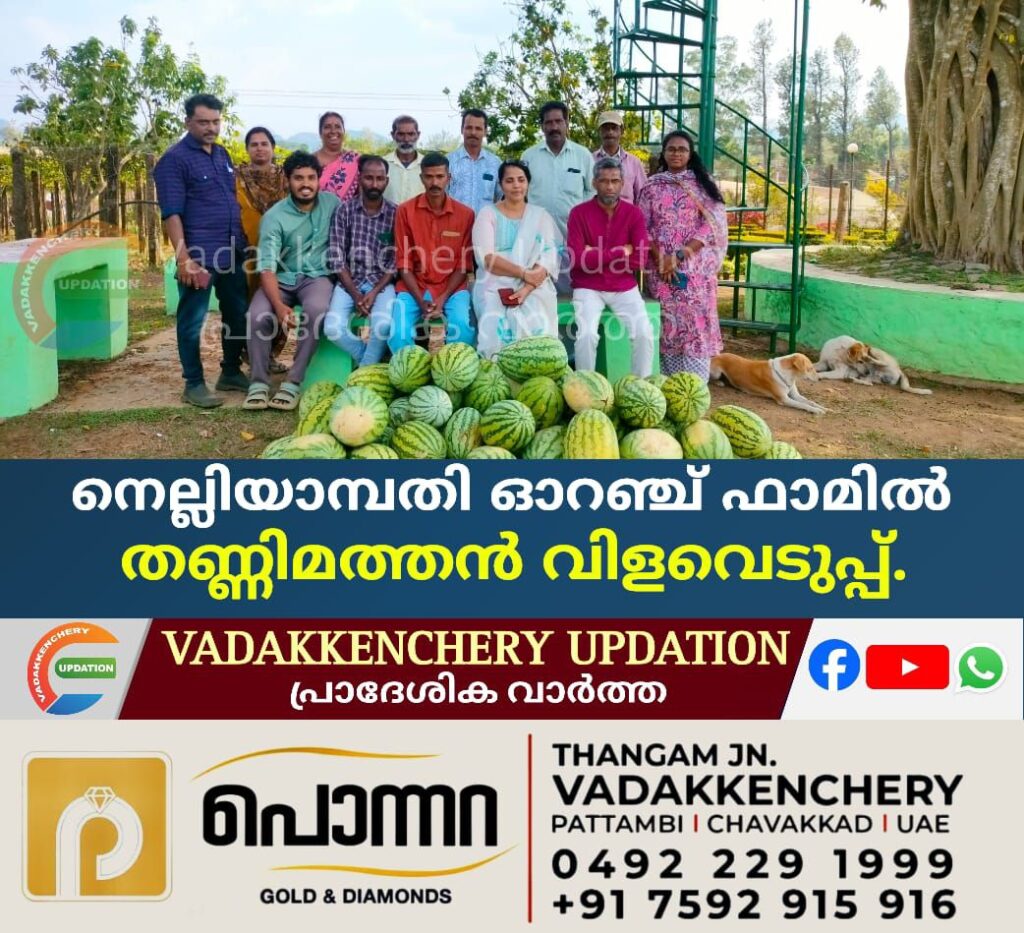 വേനലിൻ്റെ കടുത്ത ചൂടിന് ആശ്വാസം പകർന്നുകൊണ്ട് തണ്ണിമത്തൻ വിളവെടുപ്പ്. ഗവ. ഓറഞ്ച് ആൻഡ് വെജിറ്റബിൾ ഫാമിൽ ഹൈടെക് കൃഷി രീതിയിൽ രണ്ട് ഏക്കർ സ്ഥലത്ത് ചെയ്ത തണ്ണിമത്തൻ കൃഷിയുടെ വിളവെടുപ്പ് ആരംഭിച്ചു .വിളവെടുപ്പ് ഉൽഘാടനം കൃഷി വകുപ്പ് പാലക്കാട് ജില്ലാ ഡെപ്യൂട്ടി ഡയറക്ടർ മിനി ജോർജ്ജ് നിർവ്വഹിച്ചു. ഫാം സൂപ്രണ്ട് പി. സാജിദ് അലി അധ്യക്ഷത വഹിച്ചു.