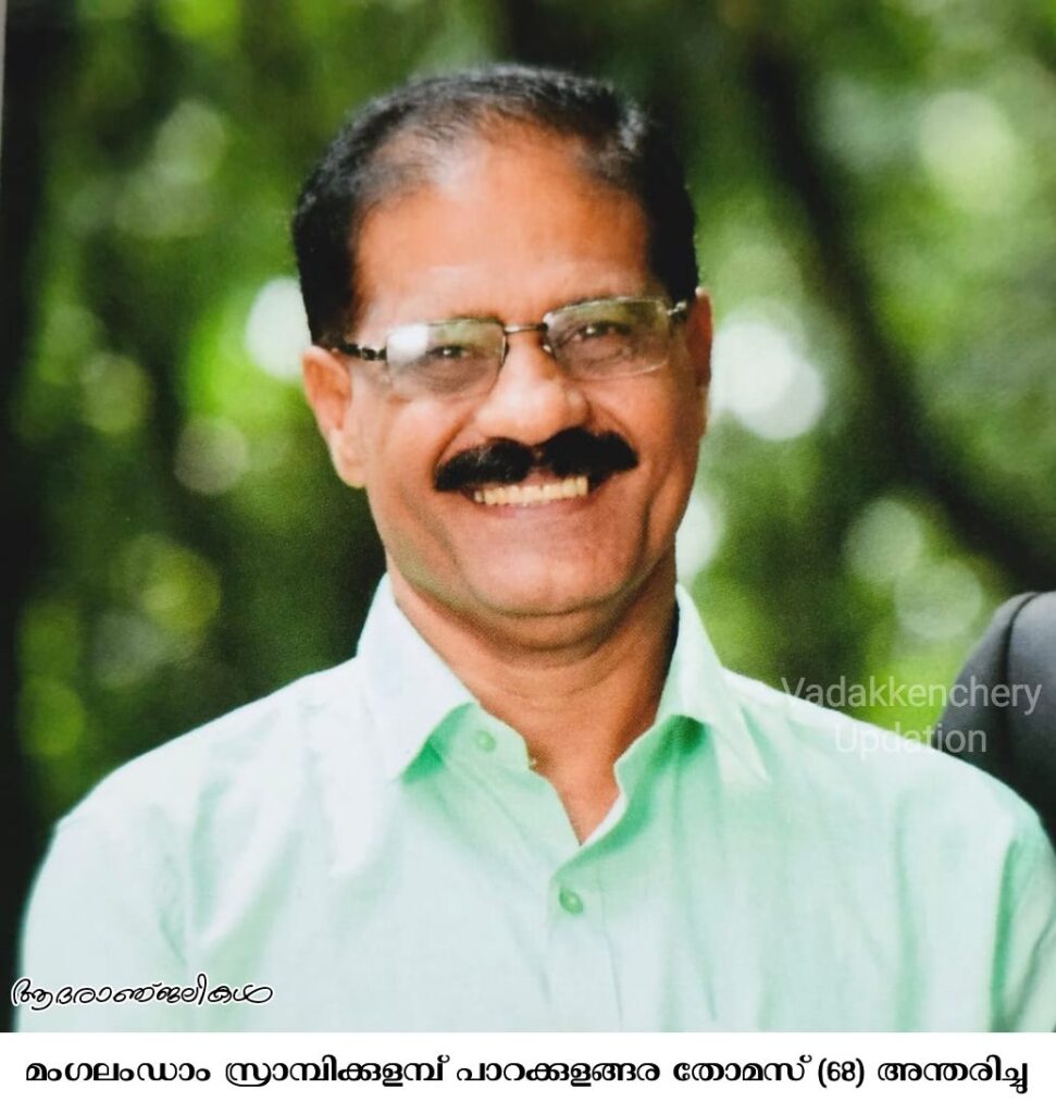മംഗലംഡാം സ്രാമ്പിക്കുളമ്പ് പാറക്കുളങ്ങര തോമസ് (68) അന്തരിച്ചു. സംസ്ക്കാരം ഇന്ന് ( 25.03.2024 തിങ്കളാഴ്ച ) 3 മണിക്ക് മംഗലംഡാം സെൻ്റ് സേവ്യേഴ്സ് ഫൊറോന പള്ളിയിൽ