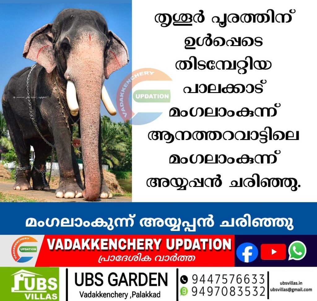ആനപ്രേമികളുടെ പ്രിയപ്പെട്ട കൊമ്പൻ മംഗലാംകുന്ന് അയ്യപ്പൻ ചരിഞ്ഞു