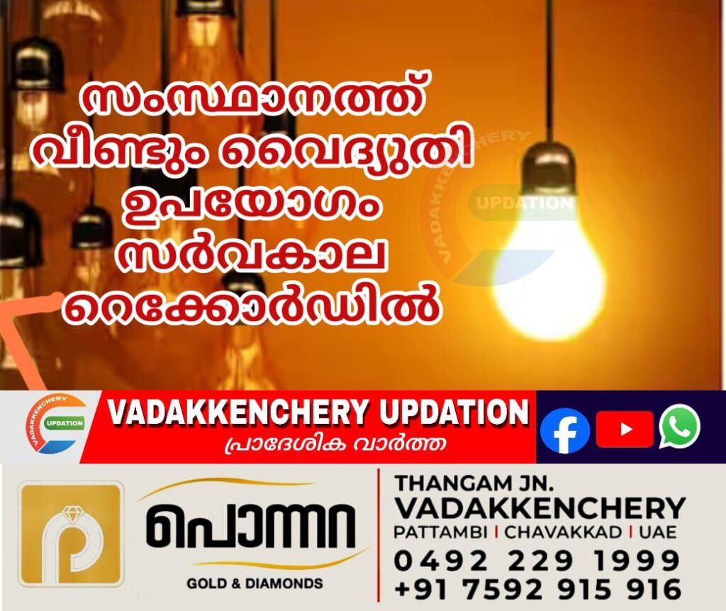 സംസ്ഥാനത്ത് വീണ്ടും വൈദ്യുതി ഉപയോഗം സർവകാല റെക്കോർഡിൽ. ഇന്നലത്തെ ആകെ ഉപയോഗം 108.22 ദശലക്ഷം യൂണിറ്റ് എത്തി. പീക് ടൈമിലെ ആവശ്യകതയും റെക്കോർഡിലാണ്. ഇന്നലെ വൈകിട്ട് ആറ് മണി മുതൽ 11 മണി വരെ 5364 മെഗാവാട്ട് വൈദ്യുതി ആണ് ആവശ്യമായി വന്നത്. ഈ മാസം മൂന്നിന് ആണ് ഇതിന് മുമ്പ് ഏറ്റവും അധികം വൈദ്യുതി ഉപയോഗം ഉണ്ടായത്. കഴിഞ്ഞ ഒരാഴ്ച ആയി പ്രതിദിന വൈദ്യുതി ഉപയോഗം 100 ദശലക്ഷം യൂണിറ്റിന് മുകളിൽ ആണ്. സംസ്ഥാനതിന്റെ പ്രത്യേക സാഹചര്യം കണക്കിൽ എടുത്തു ഉപഭോക്താക്കൾ വൈദ്യുതി ഉപയോഗത്തിൽ നിയന്ത്രണം ഏർപ്പെടുത്തണം എന്നാണ് കെഎസ്ഇബി യുടെ നിർദേശം.