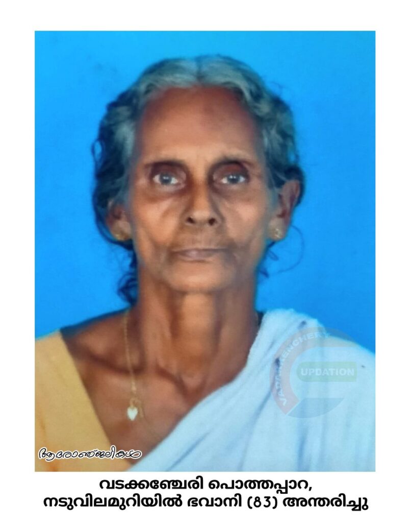 വടക്കഞ്ചേരി പൊത്തപ്പാറ, നടുവിലമുറിയിൽ പരേതനായ ചെല്ലപ്പൻ ഭാര്യ ഭവാനി (83) അന്തരിച്ചു