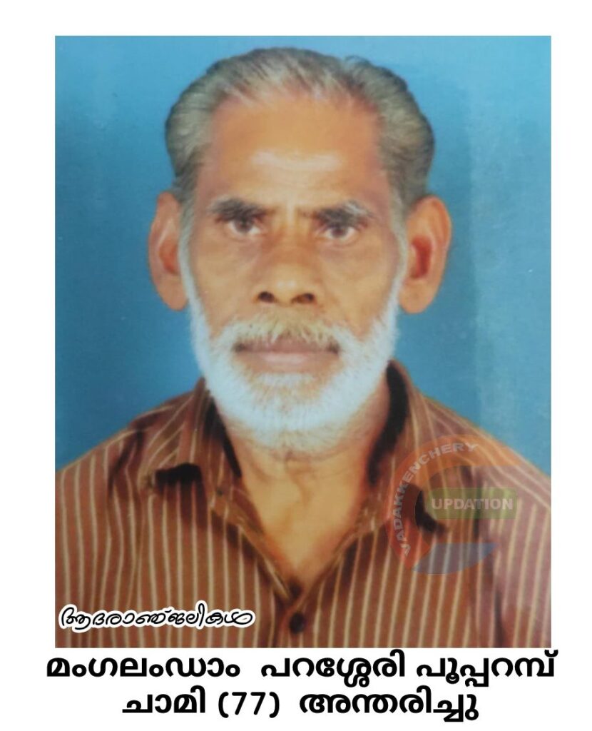 മംഗലംഡാം പറശ്ശേരി പൂപ്പറമ്പ് ചാമി (77) അന്തരിച്ചു സംസ്കാരം ഇന്ന് (12.04.2024) വെള്ളിയാഴ്ച മൂന്നുമണിക്ക് നെന്മാറ വാക്കാവ് ശ്മശാനത്തിൽ. ഭാര്യ :കല്യാണി
