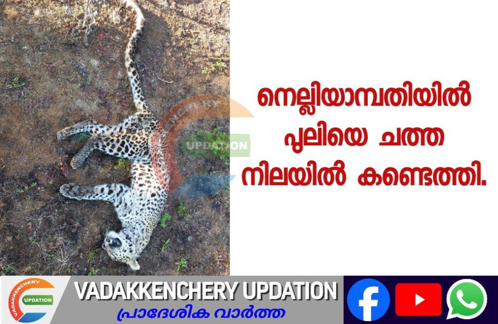 പാലക്കാട് നെല്ലിയാമ്പതിയിലെ ജനവാസ മേഖലയോട് ചേർന്ന് പുലിയെ ചത്ത നിലയിൽ കണ്ടെത്തി.