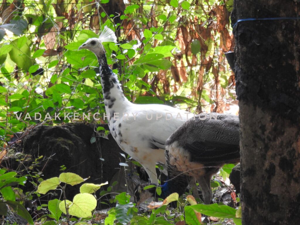 പോത്തുണ്ടി മലയോരത്ത് വെള്ള മയിലിനെ കണ്ടെത്തി. നെന്മാറ പഞ്ചായത്തിലെ പോത്തുണ്ടി മാട്ടായി പ്രദേശങ്ങളിലായാണ് മയിൽക്കൂട്ടത്തിനിടയിൽ പൂർണമായും വെള്ള നിറമുള്ള പെൺ മയിലിനെ കണ്ടത്. പ്രദേശത്ത് പക്ഷി നിരീക്ഷണം നടത്തുന്ന മുഹമ്മദ് സുലൈമാനാണ് വെള്ള മയിലിനെ കണ്ടെത്തിയത്. പാവോ ക്രിസ്റ്റാറ്റസ് എന്ന ശാസ്ത്രനാമത്തിൽ അറിയപ്പെടുന്ന മയിൽ തന്നെയാണിതെന്ന് 40 വർഷത്തോളമായി പക്ഷി നിരീക്ഷണ രംഗത്തുള്ള സുലൈമാൻ കരിമ്പാറ സാക്ഷ്യപ്പെടുത്തുന്നു. കഴിഞ്ഞവർഷം ഭാഗികമായി വെളുത്ത നിറത്തിൽ മയിലിനെ കണ്ടെത്തിയെങ്കിലും പൂർണ്ണ വളർച്ചയെത്തിയതോടെ മയിൽ പൂർണ്ണമായും വെള്ളം നിറമായി മാറിയതെന്ന് പക്ഷി നിരീക്ഷകൻ പറഞ്ഞു. പെൺമയിലുകളുടെ ശരീരത്തിൽ കാണുന്ന വെളുത്ത നിറവും തവിട്ടു നിറവും ഉൾപ്പെടുന്ന തൂവലുകളും നീല നിറത്തിലുള്ള കിരീടവും പൂർണമായും കൊക്കുവർഗക്കരേ പോലെ തൂവെള്ള നിറമായി. കഴുത്തിലും ചിറകിന്റെ വശത്ത് ഓരോ തൂവലുകളും മാത്രമാണ് പെൺമയിലുകളുടെ ശരീരത്തിലുള്ളതുപോലെ അല്പം തിളങ്ങുന്നപച്ച നിറം ശേഷിക്കുന്നത്. പക്ഷികളിൽ അപൂർവമായി കാണുന്ന ആൽബിനോ എന്ന വർണ്ണക കുറവ് മൂലമാണ് മയിൽ വെള്ളം നിറമായി മാറിയതെന്നും പക്ഷി നിരീക്ഷകൻ പറഞ്ഞു. സാധാരണ മയിൽക്കൂട്ടത്തിലെ മറ്റു പിട മയിലുകളുടെ സ്വഭാവം തന്നെയാണ് വെളുത്ത മയിലും പ്രകടിപ്പിക്കുന്നത്. വിവേചനം കാണിക്കുകയോ ചെയ്യുന്നില്ല. പ്രദേശത്തെ ചിലർ പുതിയ ജനു സാണെന്നും പ്രത്യേക വിഭാഗമാണെന്നും പറയുന്നുണ്ടെങ്കിലും. സാധാരണ മയിലിന്റെ നിറവ്യത്യാസം ഉണ്ടായത് മാത്രമാണെന്നാണ് പക്ഷിനിരീക്ഷകനായ സുലൈമാൻ കരിമ്പാറ പറഞ്ഞു. മറ്റു ചില പക്ഷി വർഗ്ഗങ്ങളിലും അപൂർവമായി ആൽബിനോ മൂലം ചെറിയതോതിൽ നിറവ്യത്യാസം കാണാറുണ്ട്. നട വ്യത്യാസമുള്ളതിനാൽ കൂട്ടത്തിൽ വേറിട്ട അറിയുന്നതിനാൽ പൂച്ചകളും, പട്ടികളും, കുറുക്കനും, ഓടിക്കുന്നതിനാൽ ആളുകളെ കണ്ടാൽ ഓടിമറയുകയാണ് ചെയ്യുന്നത്.