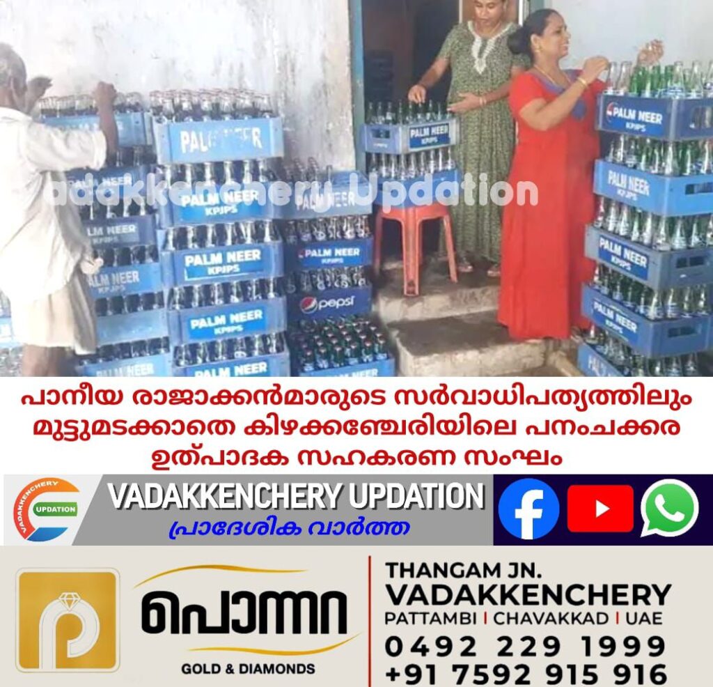 പാനീയ രാജാക്കന്മാരുടെ സർവാധിപത്യത്തിലും കിഴക്കഞ്ചേരിയിലെ പ്രകൃതിദത്ത പാംനീർ ഉത്പന്നങ്ങള്ക്ക് ഇന്നും ആവശ്യക്കാരേറെ.കടുത്ത വേനല്ച്ചൂടില് പാം നീർ പാനീയങ്ങള് ചൂടപ്പം പോലെയാണ് വിറ്റഴിയുന്നത്. വിപണിയില് ഉത്പന്നങ്ങള്ക്ക് പ്രിയം കൂടിയതോടെ ആവശ്യത്തിനുള്ള പാനീയം കടകളില് എത്തിച്ചുകൊടുക്കാൻ കഴിയുന്നില്ലെന്ന പ്രയാസമേ ഇവിടത്തെ ജീവനക്കാർക്കുള്ളൂ.