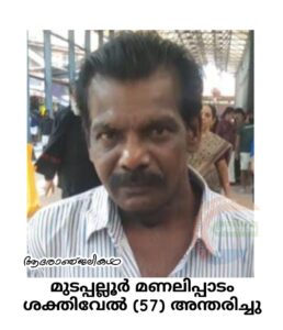 മുടപ്പല്ലൂർ മണലിപ്പാടം ശക്തിവേൽ (57) അന്തരിച്ചു