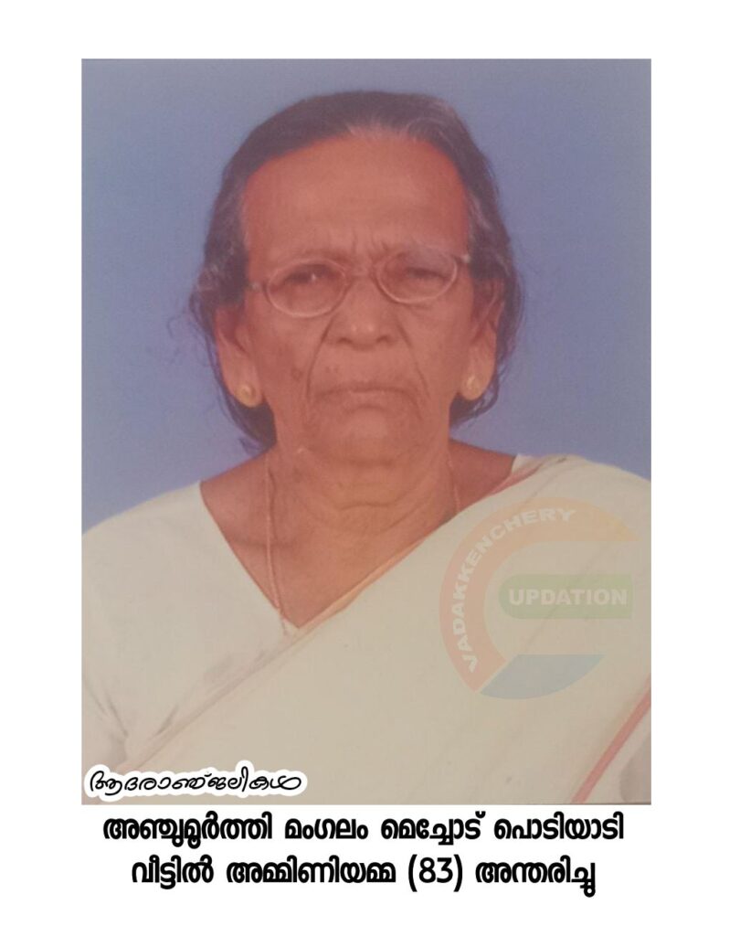 അഞ്ചുമൂർത്തി മംഗലം മെച്ചോട് താമസം തിരുവല്ല പൊടിയാടി വീട്ടിൽ അമ്മിണിയമ്മ (83) അന്തരിച്ചു