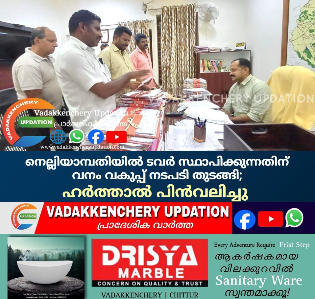 നെല്ലിയാമ്പതിയിലേക്ക് വൈദ്യുതി എത്തിക്കുന്നതിനായി ടവര് ലൈന് സ്ഥാപിക്കുന്നതിന് തുടര് നടപടികള് സ്വീകരിക്കാന് വനം വകുപ്പ് തീരുമാനം. ഇതു സംബന്ധിച്ച് നെന്മാറ ഡി.എഫ്.ഒ.യുമായി നടത്തിയ ചര്ച്ചയില് തീരുമാനമായതോടെ വ്യാഴാഴ്ച നെല്ലിയാമ്പതി പഞ്ചായത്തില് നടത്താനിരുന്ന ഹര്ത്താല് പിന്വലിച്ചു.