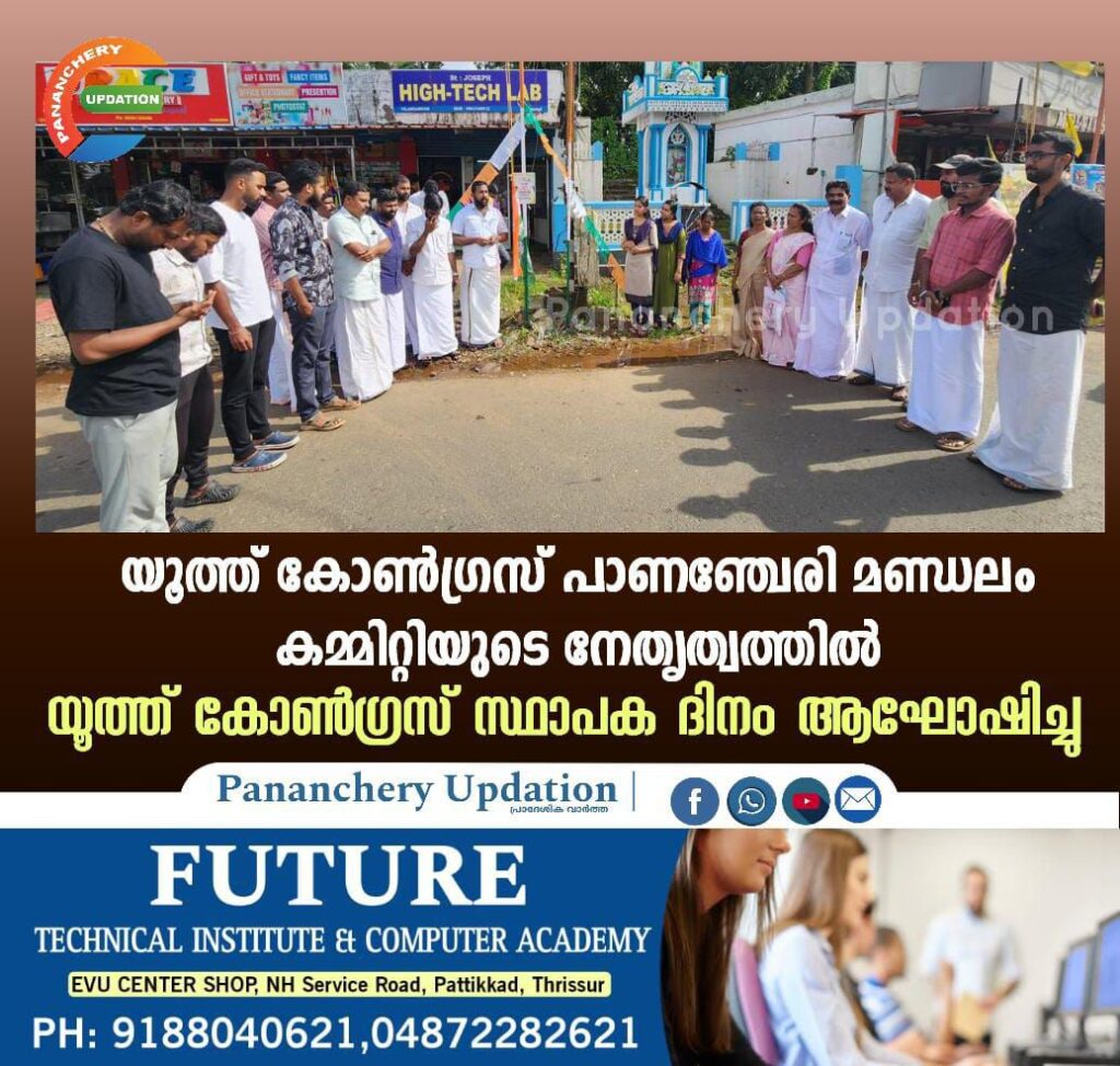 യൂത്ത് കോൺഗ്രസിന്റെ 64 മത് സ്ഥാപകദിനം യൂത്ത് കോൺഗ്രസ് പാണഞ്ചേരി മണ്ഡലം കമ്മിറ്റിയുടെ നേതൃത്വത്തിൽ വിപുലമായി ആഘോഷിച്ചു. വിലങ്ങന്നൂർ സെന്ററിൽ നടന്ന മണ്ഡലം തല പരിപാടിയിൽ മണ്ഡലം പ്രസിഡന്റ് ജിഫിൻ ജോയ് പതാക ഉയർത്തി.