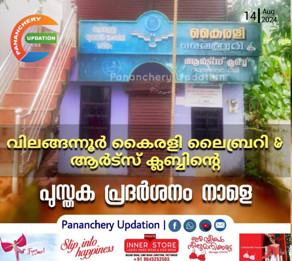 വിലങ്ങന്നൂർ കൈരളി ലൈബ്രറി & ആർട്സ് ക്ലബ്ബിന്റെ ആഭിമുഖ്യത്തിൽ സ്വാതന്ത്ര്യ ദിനത്തോടനുബന്ധിച്ച് പുസ്തകപ്രദർശനം സംഘടിപ്പിക്കുന്നു. രാവിലെ 8.30 ന് ദേശീയ പതാക ഉയർത്തും. വയനാട് ദുരന്തത്തിന് പശ്ചാത്തലത്തിൽ വിലങ്ങന്നൂർ കൈരളി ഈ വർഷത്തെ ഓണാഘോഷ പരിപാടികൾ വേണ്ടെന്നു വെച്ചു. സ്കൂൾ വിദ്യാർത്ഥികൾ ഉൾപ്പെടെ എല്ലാവരും ഈ അവസരം പ്രയോജനപ്പെടുത്തണമെന്ന് ഭാരവാഹികൾ അറിയിച്ചു