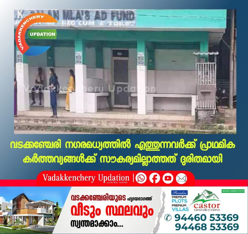 വടക്കഞ്ചേരി നഗരമധ്യത്തില് എത്തുന്നവർക്ക് പ്രാഥമിക കർത്തവ്യങ്ങള്ക്ക് സൗകര്യമില്ലാത്തത് ദുരിതമായി