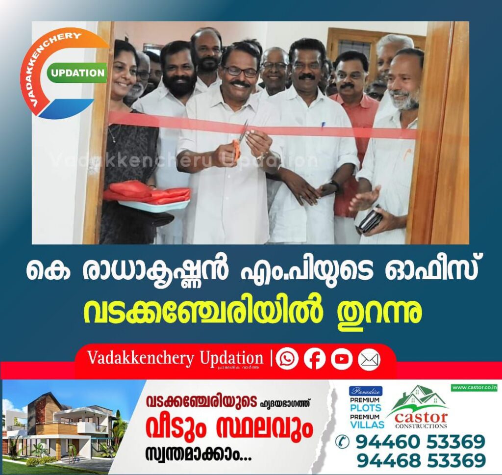 കെ രാധാകൃഷ്ണൻ എം.പിയുടെ ഓഫീസ് വടക്കഞ്ചേരിയിൽ തുറന്നു. കെ മാധവൻ സ്മാരക മന്ദിരത്തിൽ (സിപിഐ എം വടക്കഞ്ചേരി ഏരിയ കമ്മിറ്റി ഓഫീസ്) ആരംഭിച്ച ഓഫീസ് സിപിഐ എം സംസ്ഥാന കമ്മിറ്റി അംഗം സി കെ രാജേന്ദ്രൻ ഉദ്ഘാടനം ചെയ്തു. കേരള കോൺഗ്രസ് (എം) ജില്ലാ പ്രസിഡന്റ് കെ കുശലകുമാർ അധ്യക്ഷനായി. കെ രാധാകൃഷ്ണൻ എംപി, എംഎൽഎമാരായ എ സി മൊയ്തീൻ, കെ ഡി പ്രസേനൻ, സിപിഐ എം ജില്ലാ സെക്രട്ടറിയറ്റംഗം ടി എം ശശി, എൻസിപി ജില്ലാ സെക്രട്ടറി എസ് ബഷീർ എന്നിവർ സംസാരിച്ചു.