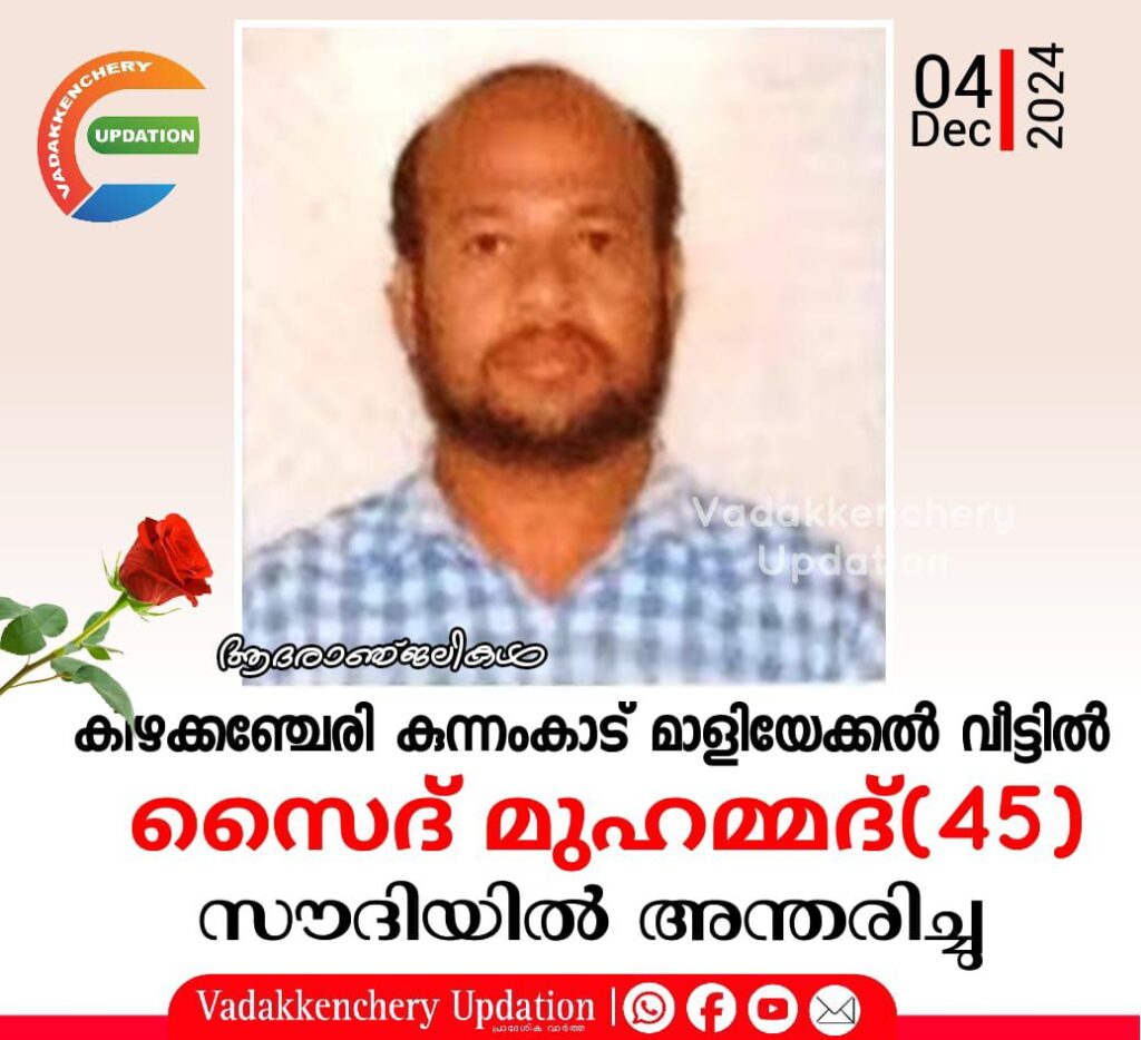 കിഴക്കഞ്ചേരി കുന്നംകാട് മാളിയേക്കൽ വീട്ടിൽ സൈദ് മുഹമ്മദ്(45) സൗദിയിൽ