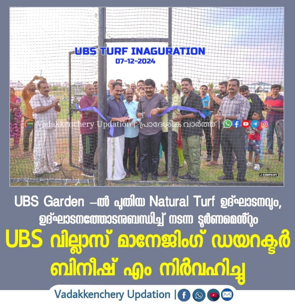 വടക്കഞ്ചേരി UBS Villas ൻ്റെ പ്രൊജക്റ്റ് ആയ തേനിടുക്ക് UBS Garden -ൽ പുതിയ Natural Turf ഉദ്ഘാടനവും, ഉദ്ഘാടനത്തോടനുബന്ധിച്ച് നടന്ന ടൂർണമെൻ്റും UBS വില്ലാസ് മാനേജിംഗ് ഡയറക്ടർ ബിനീഷ് എം നിർവഹിച്ചു. പ്രസ്തുത പരിപാടിയിൽ മോഹനൻ പള്ളിക്കാട്, സുരേഷ് വേലായുധൻ, UBS garden റെസിഡൻസ് അസോസിയേഷൻ ഭാരവാഹികൾ, garden നിവാസികൾ കൂടാതെ ഒട്ടനവധി ടൂർണമെന്റ് ടീമുകളും പങ്കെടുത്തു.