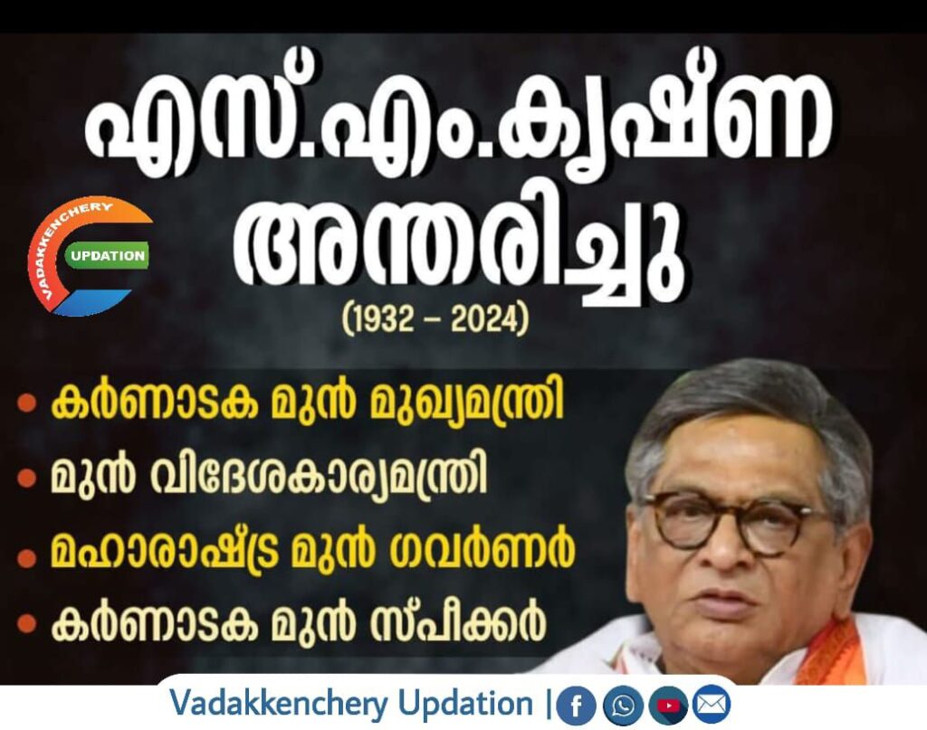 കർണാടക മുൻ മുഖ്യമന്ത്രിയും വിദേശകാര്യ മന്ത്രിയുമായിരുന്ന എസ്.എം. കൃഷ്ണ അന്തരിച്ചു