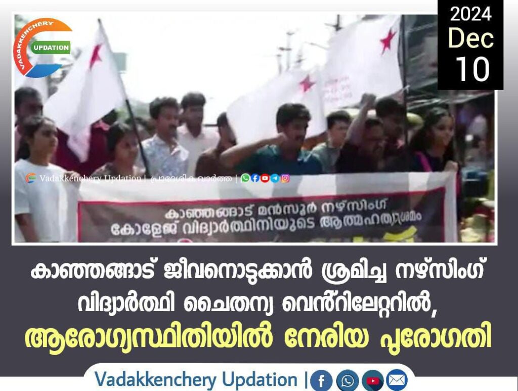 കാഞ്ഞങ്ങാട് ജീവനൊടുക്കാൻ ശ്രമിച്ച നഴ്സിംഗ് വിദ്യാർത്ഥി ചൈതന്യ വെൻ്റിലേറ്ററിൽ, ആരോഗ്യസ്ഥിതിയിൽ നേരിയ പുരോഗതി