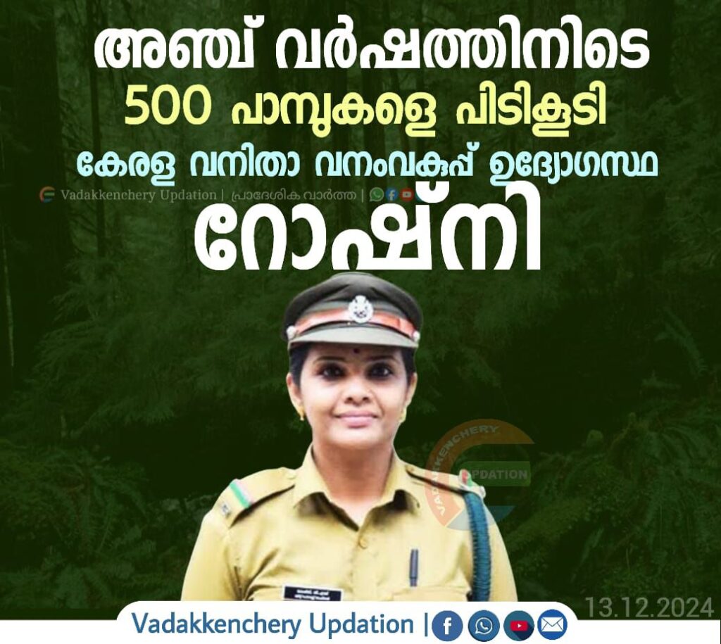 അഞ്ച് വർഷത്തിനിടെ 500 പാമ്പുകളെ പിടികൂടി കേരള വനിതാ വനംവകുപ്പ് ഉദ്യോഗസ്ഥ