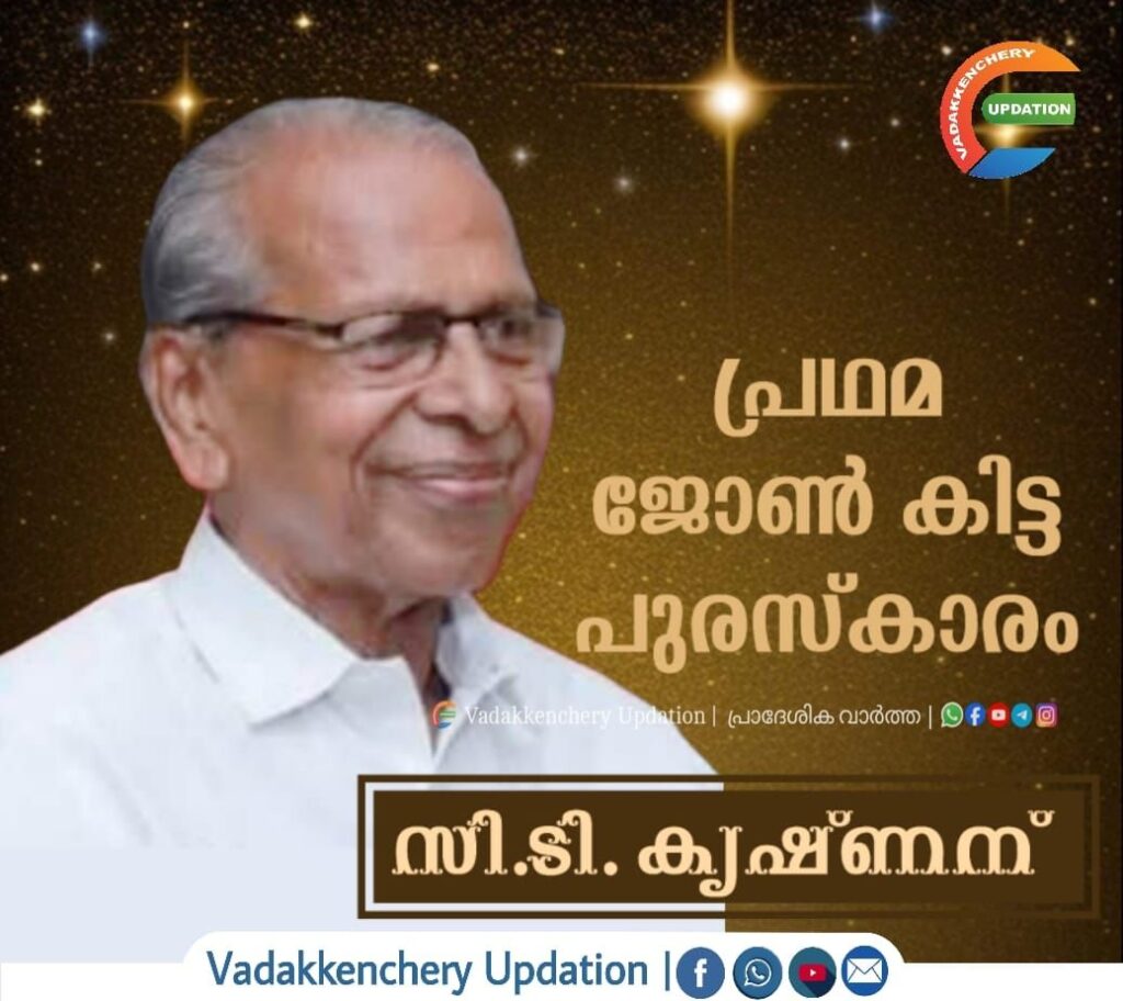 കല്പാത്തി സമരത്തിൻ്റെ 100-ാം വാർഷികത്തോടനുബന്ധിച്ച് പാലക്കാട് ജില്ലയിൽ രാഷ്ട്രീയ രംഗത്തും, സാമൂഹ്യ ഇടപെടലുകളിലും, പൊതു പ്രവർത്തനത്തിലും മികവ് പുലർത്തിയ, ജനകീയ പ്രവർത്തനങ്ങൾക്ക് നേതൃത്വം നല്കിയ വ്യക്തികൾക്കുള്ള കണ്ണാടി ജനശക്തി കലാ സാംസ്കാരിക കേന്ദ്രം & ഗ്രന്ഥശാല ഏർപ്പെടുത്തിയ പ്രഥമ ജോൺ കിട്ട പുരസ്കാരത്തിന് സി.ടി. കൃഷ്ണൻ അർഹനായി.