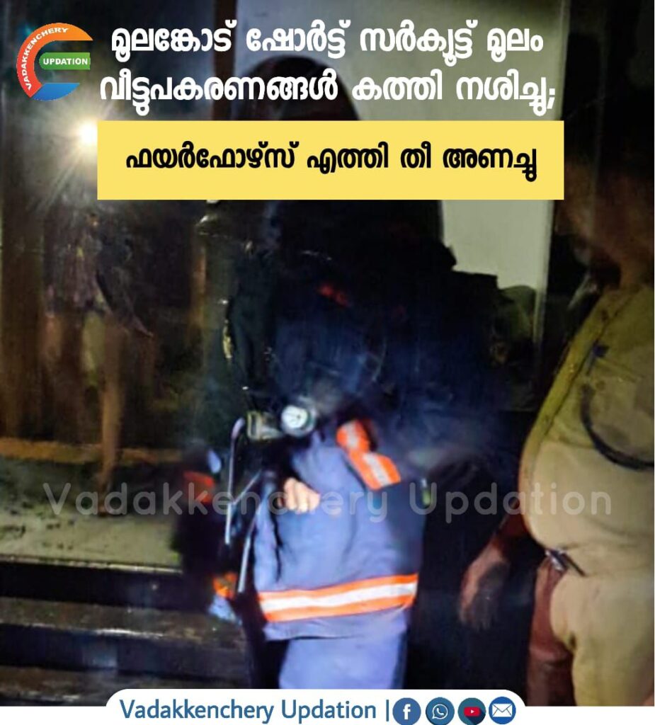 മൂലങ്കോട് ഷോർട്ട് സർക്യൂട്ട് മൂലം വീട്ടുപകരണങ്ങൾ കത്തി നശിച്ചു; ഫയർഫോഴ്സ് എത്തി തീ അണച്ചു