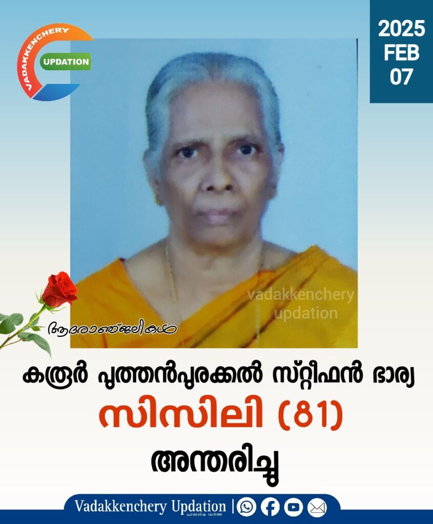 കരൂർ പുത്തൻപുരക്കൽ സ്റ്റീഫൻ(തങ്കച്ചൻ) ഭാര്യ സിസിലി (81) അന്തരിച്ചു.