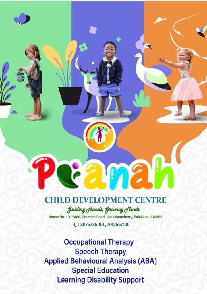 ഓട്ടിസം, ADHD, ഡൗൺസിൻഡ്രം, പഠന വൈകല്യം തുടങ്ങിയ ശാരീരിക മാനസിക സംസാര വൈകല്യങ്ങൾ അനുഭവിക്കുന്ന കുട്ടികൾക്ക് കരുത ലോടെ കരുത്തുപകരാൻ, സ്നേഹത്തോടെ ചേർത്തു നിർത്താൻ, സമൂഹത്തിന്റെ മുഖ്യധാരയിലേക്ക് കൈ പിടിച്ചു നടത്താൻ ഇനി ഞങ്ങളുണ്ട് നിങ്ങൾക്കൊപ്പം. അനവധി കുഞ്ഞുങ്ങളെ പരിശീലിപ്പിച്ചു പ്രവർത്തിപരിചയമുള്ള സ്പെഷ്യൽ ടീച്ചേഴ്സുമാരുടെയും തെറാപ്പിസ്റ്റുമാ രുടെയും സൈക്കോളജിസ്സ്റ്റുമാരുടെയും സേവനം ഞങ്ങൾ നിങ്ങൾക്ക് ലഭ്യമാക്കുന്നു. നമ്മുടെ കുഞ്ഞുങ്ങളിൽ കാണുന്ന പല വൈകല്യങ്ങളും വളരെ നേരത്തേ കണ്ടെത്തി അതിനെ മറികടക്കാനുള്ള പരിശീലനം നൽകുകയാണെങ്കിൽ തീർച്ചയായും ഫലം കാണും. ഇതിനായി നിങ്ങൾക്കൊപ്പം താങ്ങായ് ഇനി ഇനി ഞങ്ങളുണ്ട്. താഴെ പറഞ്ഞ തെറാപ്പികൾക്ക് പുറമേ പ്ലേ തെറാപ്പി, ഗ്രൂപ്പ് തെറാപ്പി എന്നിവയും ഞങ്ങൾ കുഞ്ഞുങ്ങൾക്കായ് ഒരുക്കിയിട്ടുണ്ട്. നമുക്കൊരുമിച്ചു നിന്ന് നമ്മുടെ കുരുന്നുകളെ അറിവിൻ്റെ പുതിയ ലോകത്തേക്ക് കൈപിടിച്ചുയർത്താം, അവരുടെ സ്വപ്നങ്ങൾക്ക് ചിറകു നൽകാം, നിറമുള്ള ഒരു ലോകം അവർക്കായ് ഒരുക്കാം.