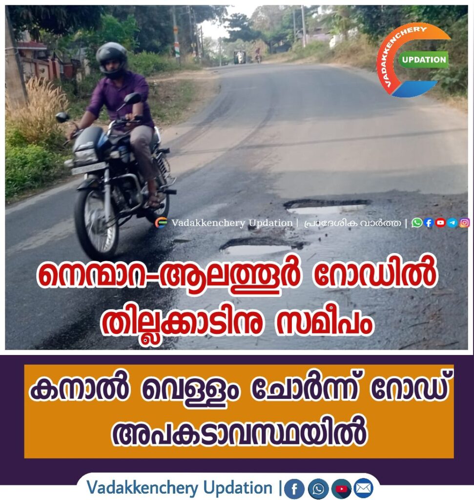 പാലക്കാട് നിന്നും നെമ്മാറ – ആലത്തൂർ പോകുന്ന റോഡിൽ തില്ലങ്കാടിന് സമീപം നിരവധി വാഹനങ്ങൾ പോവുന്ന റോഡിൽ ഒരു വളവും അതിനു സമീപത്തായി കനാൽ വെള്ളം പോവുകയും അത് ചോർച്ചയായി റോഡിൽ വലിയ അപകടകരമായ കുഴികളും ഉണ്ടായിട്ടുണ്ട്. ഇതു കാരണം അതിലൂടെ വരുന്ന വാഹനങ്ങൾ തെറ്റായ ദിശയിലൂടെയാണ് കടന്നു പോകുന്ന സാഹചര്യമാണ് ഉണ്ടാകുന്നത്.ഇതുമൂലം അപകടം ഉണ്ടാവാനുള്ള സാധ്യത കൂടുതലാണ്. ഇതിനു മുൻപും അവിടെ അപകടം ഉണ്ടായിട്ടുണ്ട്.അടിയന്തിരമായി അധികാരികൾ ഇതിനൊരു പരിഹാരം ഉണ്ടാക്കണം എന്നാണ് നാട്ടുകാരുടെ ആവശ്യം.