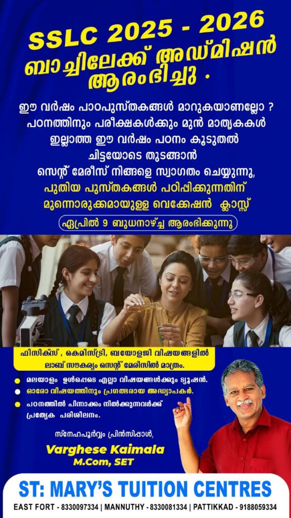 പ്രാദേശിക വാർത്തകൾ WhatsApp ൽ ലഭിക്കുന്നതിന് താഴെ ക്ലിക്ക് ചെയ്യുക👇https://chat.whatsapp.com/F6BWj8HGzZL4wnx2Rd23Wt
