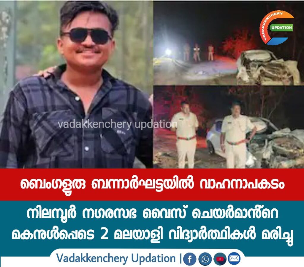 ബെംഗളൂരു: ബെംഗളൂരു ബന്നാർഘട്ടയിലുണ്ടായ വാഹനാപകടത്തിൽ രണ്ട് മലയാളി വിദ്യാർത്ഥികൾ മരിച്ചു. നിലമ്പൂർ സ്വദേശി അർഷ് പി ബഷീർ (23 ), കൊല്ലം സ്വദേശി മുഹമ്മദ് ഷാഹൂബ് (28) എന്നിവരാണ് മരിച്ചത്. മരിച്ച അർഷ് പി ബഷീർ നിലമ്പൂർ നഗരസഭ വൈസ് ചെയർമാൻ പിഎം ബഷീറിൻ്റെ മകനാണ്. അർഷ് പി ബഷീർ എംബിഎ വിദ്യാർത്ഥിയും മുഹമ്മദ് ഷാഹൂബ് ബെംഗളൂരുവിൽ ജോലി ചെയ്യുകയുമാണ്.