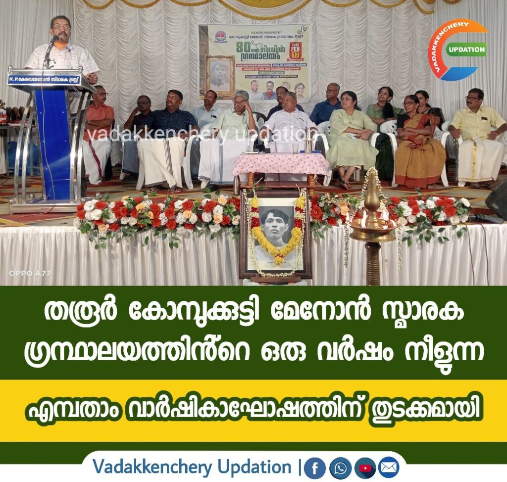 എമ്പതാം വർഷത്തിൽ 80 ഇന കർമ്മപരിപാടികൾ ഗ്രന്ഥശാല നടപ്പാകുമെന്ന് അധ്യക്ഷനായിരുന്ന ഗ്രന്ഥാലയം പ്രസിഡൻ്റ് കെ.ജി. രാജേഷ് പറഞ്ഞു. ഗ്രാമപ്പഞ്ചായത്ത് പ്രസിഡൻ്റ് ഇ. രമണി, ക്ഷേമകാര്യ സമിതി അധ്യക്ഷൻ ജി ചെന്താമരക്ഷൻ, വായനശാല സെക്രട്ടറി എ. സഹദേവൻ, വൈസ് പ്രസിഡൻ്റ് ടി.കെ. വിശ്വനാഥൻ, ജോ. സെക്രട്ടറി കെ. കൃഷ്ണൻ, കെ.പി. കേശവ മേനോൻ സ്മാരക ട്രസ്റ്റ് സെക്രട്ടറി ഇ.പി. ചിന്നക്കുട്ടൻ എന്നിവർ സംസാരിച്ചു.