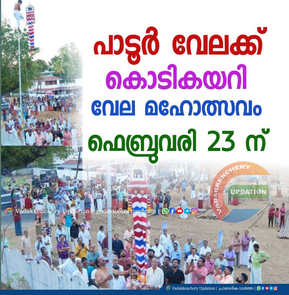പ്രസിദ്ധമായ പാടൂർ വേലക്ക് കൊടികയറി ഫെബ്രുവരി 23 ന് ആണ് വേല മഹോത്സവം നടക്കുന്നത്