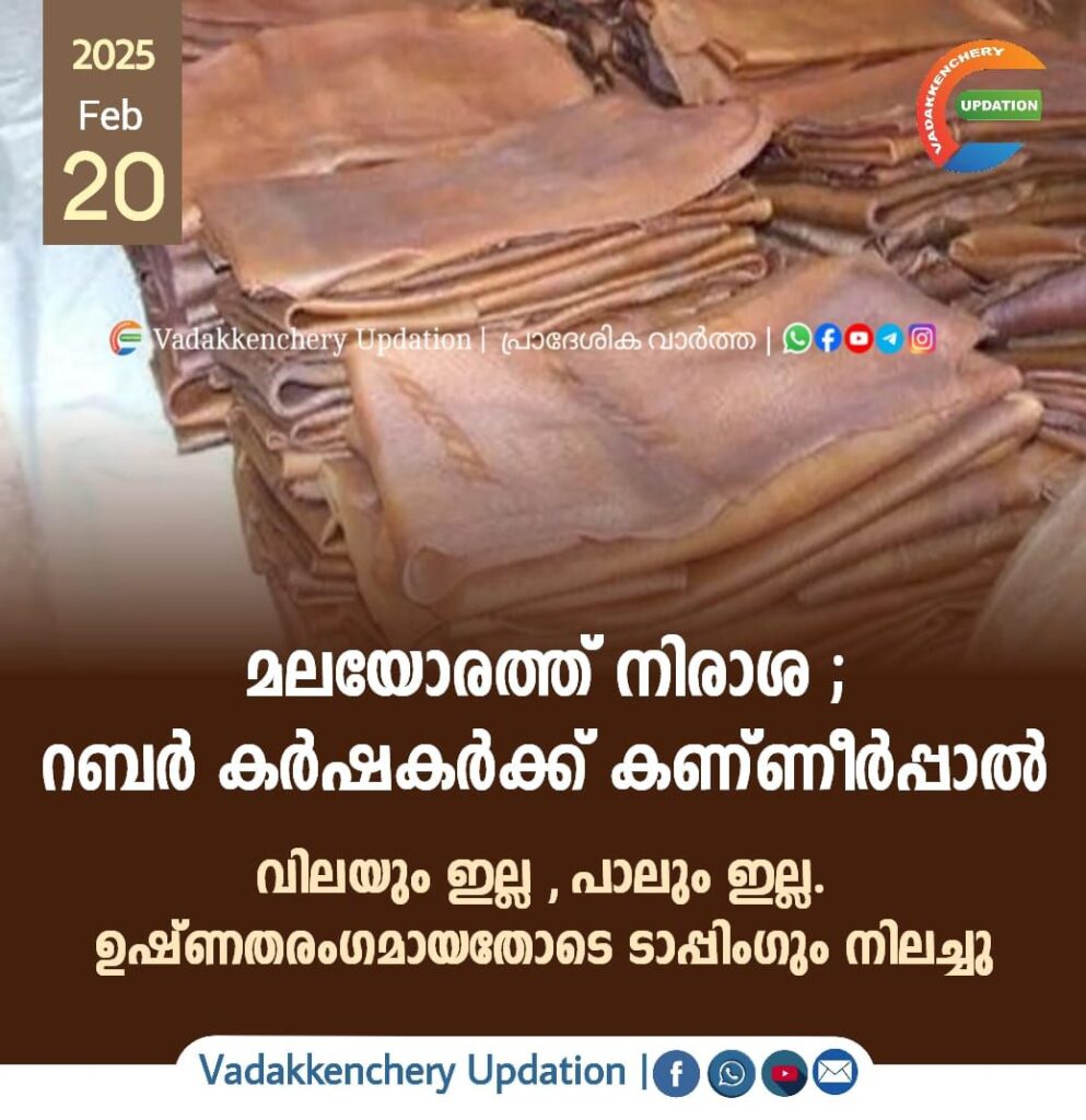 വടക്കഞ്ചേരി മലയോര മേഖലയിലെ 75 ശതമാനം കുടുംബങ്ങളും റബറിനെ ആശ്രയിച്ച് ഉപജീവനം നയിക്കുന്നവരാണ്.എന്നാൽ കടുത്ത ചൂടിൽ റബ്ബറിൽ ഉത്പാദനം കുറഞ്ഞത് കർഷകരെ പ്രതിസന്ധിയിലാക്കി.