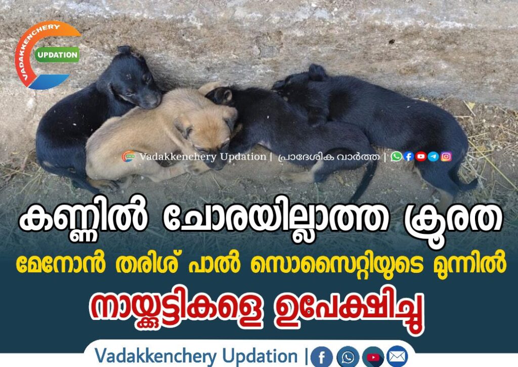 വടക്കഞ്ചേരി കിഴക്കഞ്ചേരി കോരൻചിറ മേനോൻ തരിശ് പാൽ സൊസൈറ്റിയുടെ മുന്നിൽ പറക്കമുറ്റാത്ത നായ്ക്കുട്ടികളെ ഉപേക്ഷിച്ചു ഉടമ മുങ്ങി.